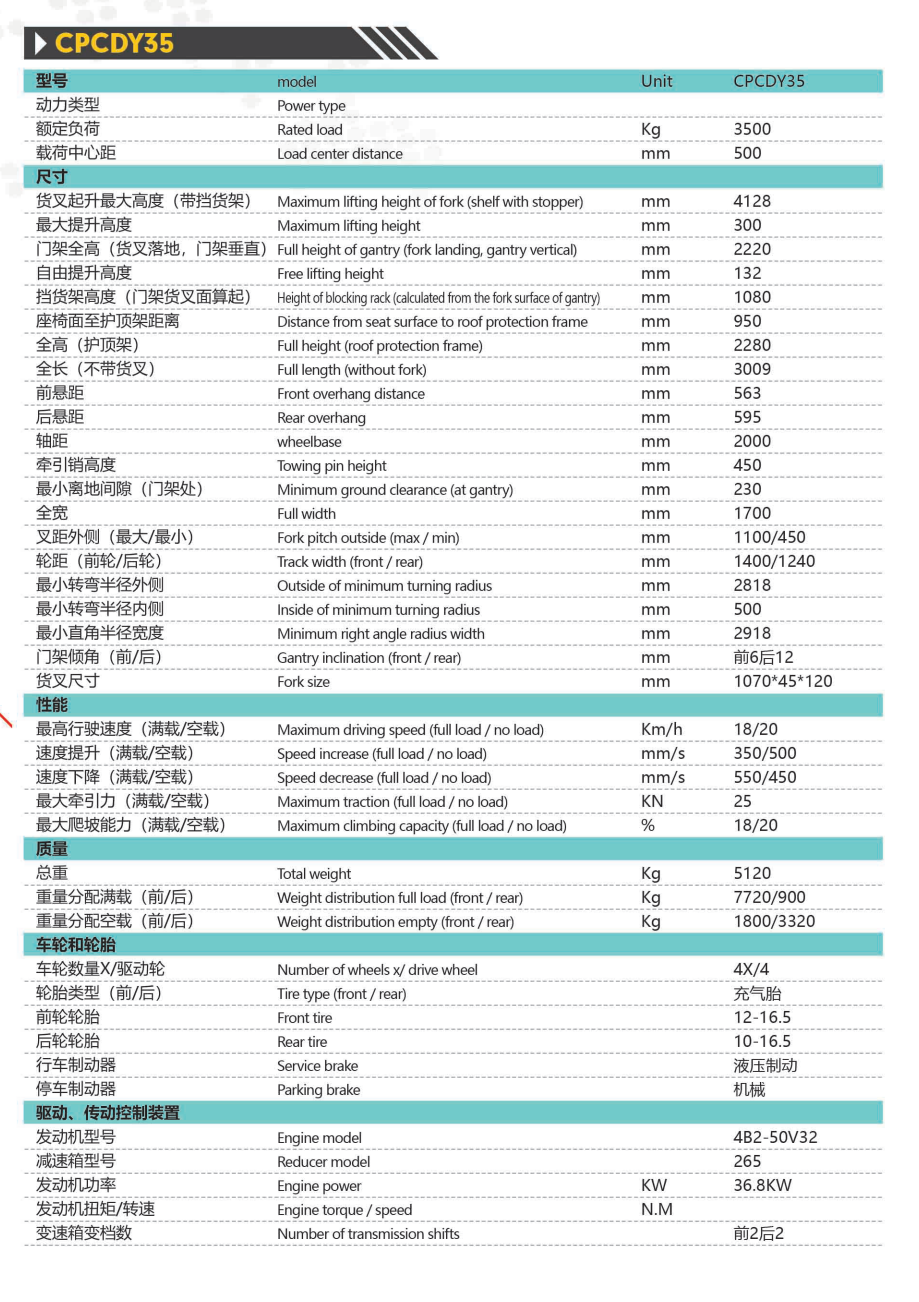 • 產品名稱: CPCDY3.5噸標配越野叉車